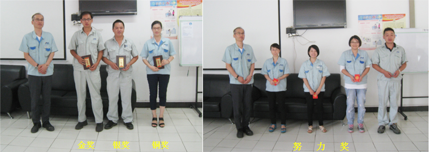通過認(rèn)真,慎重的評比,品保部生技科、制造部物流班、制造部生管科分別獲得本次活動的金獎、銀獎和銅獎,其余四個小組獲得努力獎。